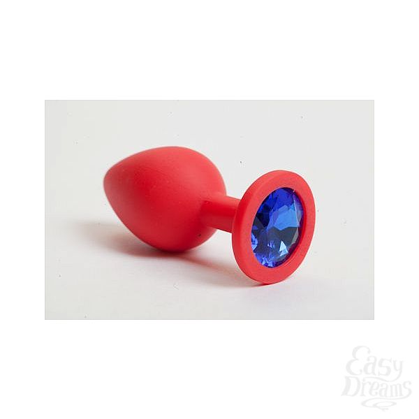 Секс шоп » Анальные игрушки » Анальная ювелирка » Красная силиконовая анальная пробка с синим стразом - 8,2 см.