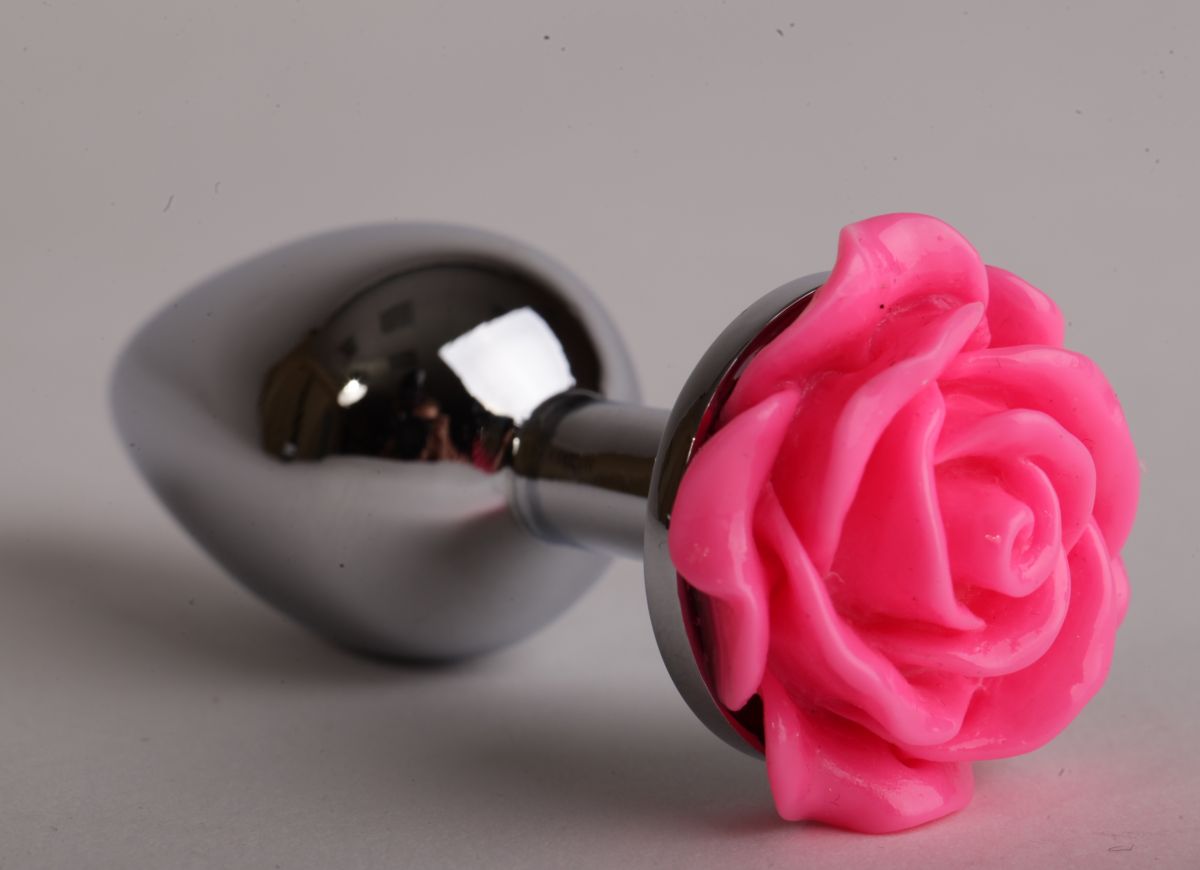 Секс шоп » Анальные игрушки » Анальная ювелирка » Серебристая анальная пробка с розовой розочкой - 9,5 см.