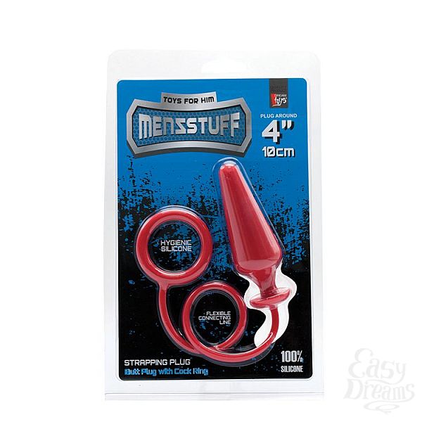 Секс шоп » Насадки / Кольца » Без вибрации » Красное эрекционное кольцо с анальной пробкой MENZSTUFF 4INCH SINGLE RING ANAL PLUG