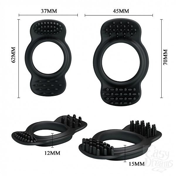 Секс шоп » Насадки / Кольца » Без вибрации » Набор из 2 эрекционных колец с щеточками для наружной стимуляции