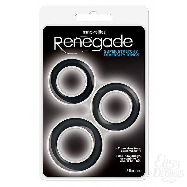 Секс шоп » Насадки / Кольца » Без вибрации » Набор из 3 чёрных эрекционных колец Renegade Diversity Rings Black