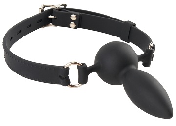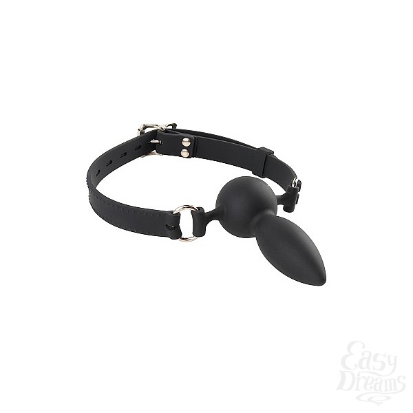 Черный кляп-трензель на кольцах и регулируемом ремешке