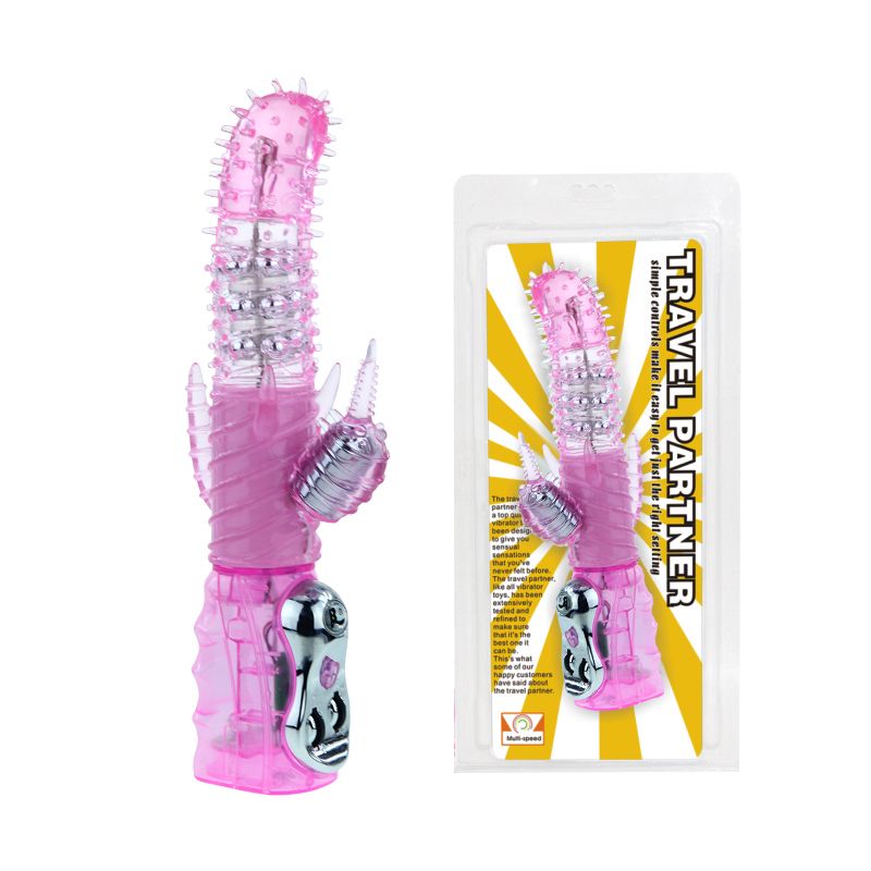 Секс шоп » Вибраторы » Хай-тек вибраторы » Розовый вибромассажер с ротацией, клиторальной стимуляцией и анальным хвостиком - 25,5 см.