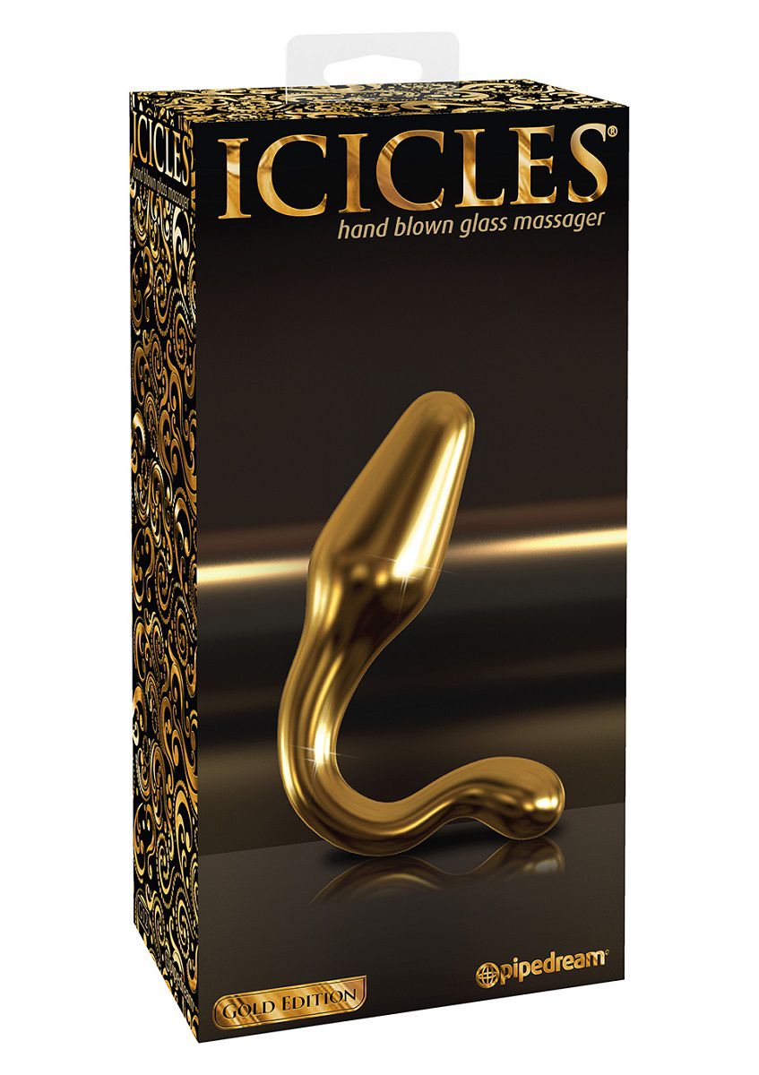 Секс шоп » Анальные игрушки » Из стекла » Золотистая анальная пробка с фигурным основанием - 10,7 см.