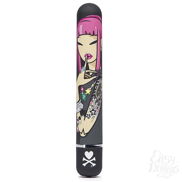 Секс шоп » Вибраторы » Классические » Чёрный вибратор с принтом CLASSIC VIBRATOR BLACK PINK LIPSTICK WOMAN - 18,4 см.