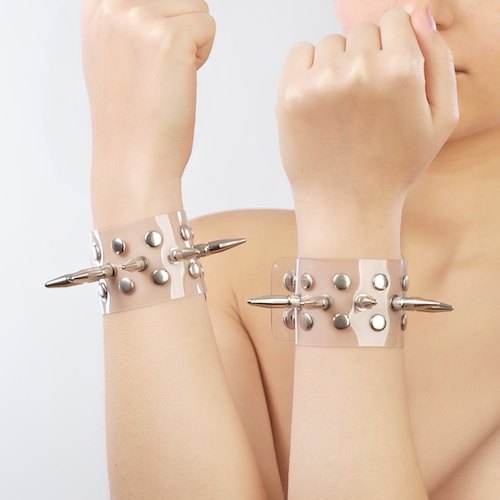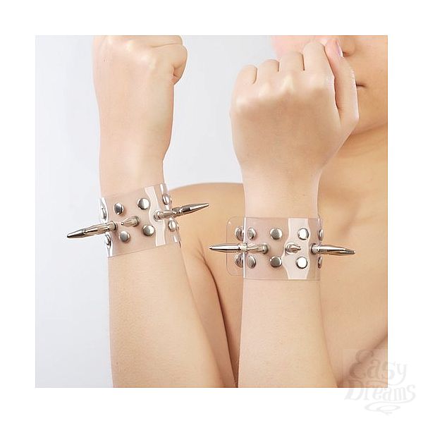Секс шоп » БДСМ / Фетиш » Наручники / Фиксация » Напульсники, манжеты » Напульсники прозрачные с шипами и заклепками, Прозрачный
