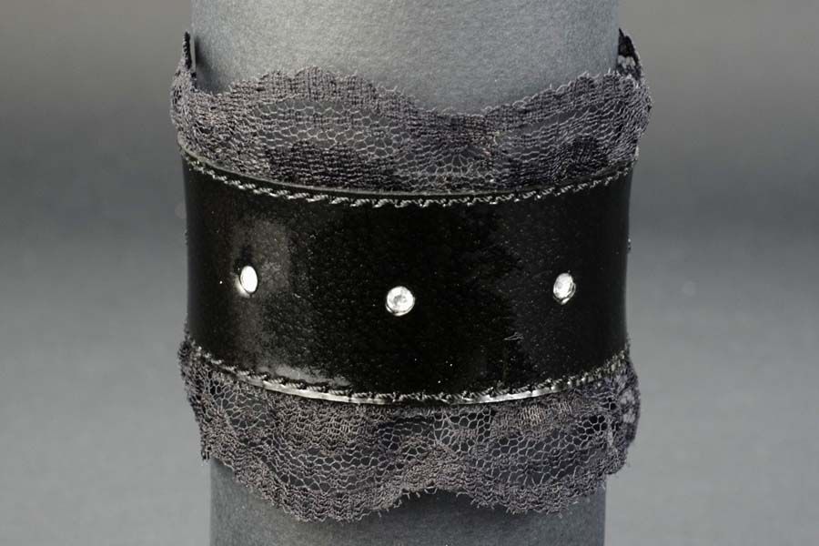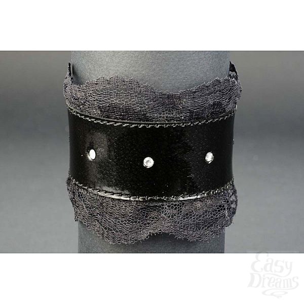 Секс шоп » БДСМ / Фетиш » Наручники / Фиксация » Напульсники, манжеты » Подшитый чёрный запястник Готика-2 с белыми стразами
