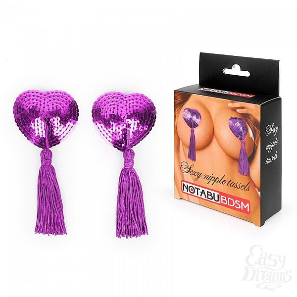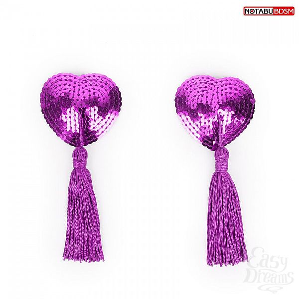 Секс шоп » Эротическое белье » Пэстисы, наклейки на соски » Фиолетовые текстильные пестисы в форме сердечек с кисточками