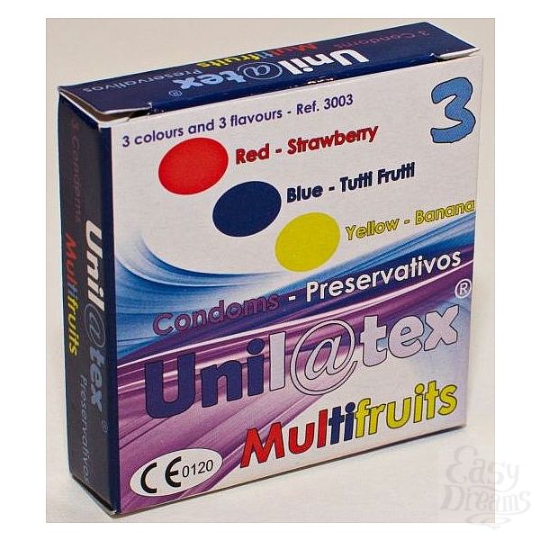 Секс шоп » Аксессуары для эротических игр » Презервативы » Разноцветные ароматизированные презервативы Unilatex Multifruits - 3 шт.