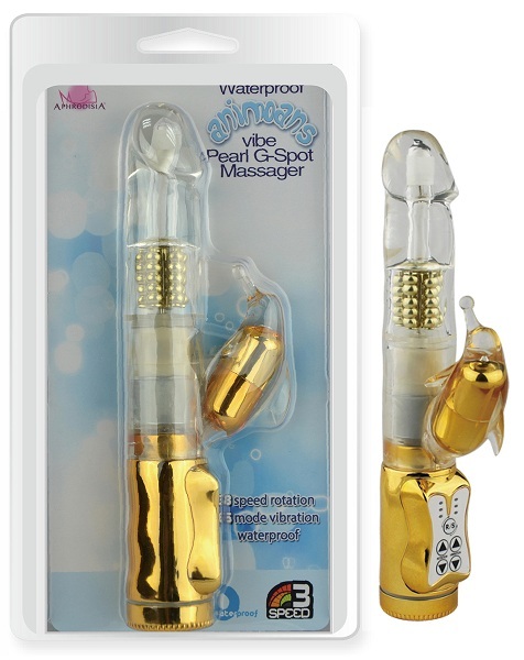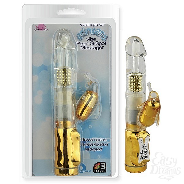 Секс шоп » Вибраторы » Вибраторы Hi-Tech » Золотистый вибратор-ротатор с отростком Dolphin Vibe Gold