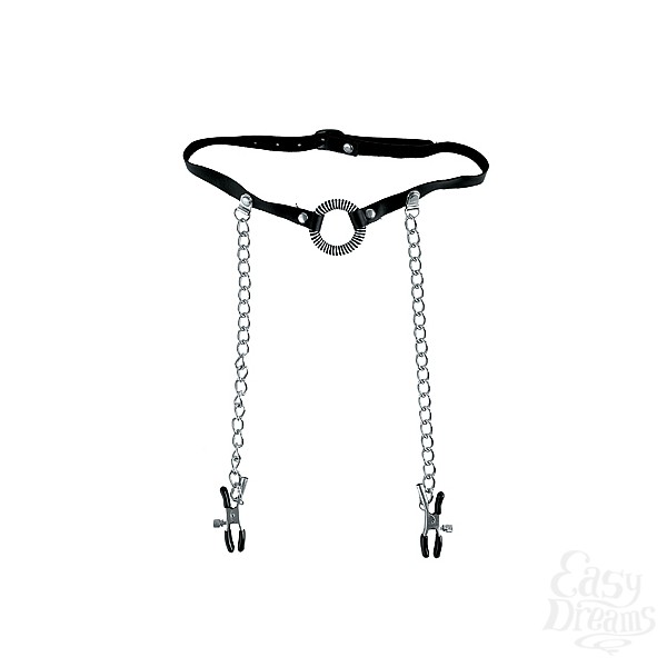 Секс шоп » БДСМ / Фетиш » Зажимы » Бондаж для груди с зажимами и кляпом-расширителем для рта O Ring Ball Gag & Nipple Clamps